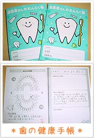 当院では、出来るだけ状況を把握していただけるように、現在の口の中の状況を記入した「歯の健康手帳」をスタッフが作成し、差し上げています。自宅で手帳を見ながらお子様の口の中を確認していただきたいのです。